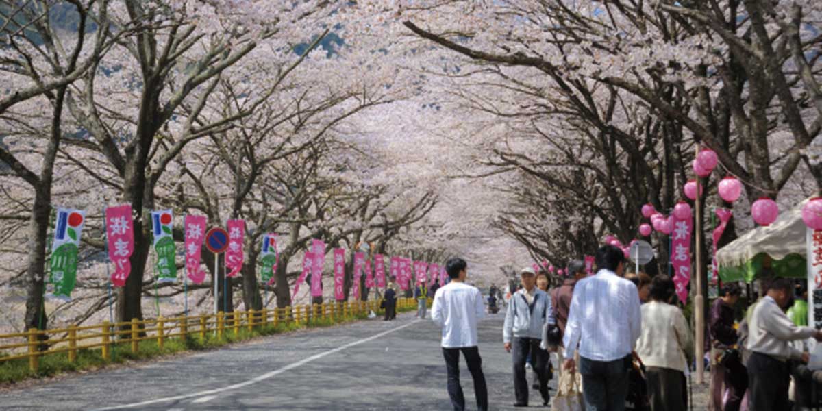 桜の名所と呼ばれる川根町家山。大井川鐡道沿いの桜トンネルや家山川沿いの桜並木、野守の池のしだれ桜などが一斉に開花し街が桜色に染まります。各所で、イベントが開かれます。