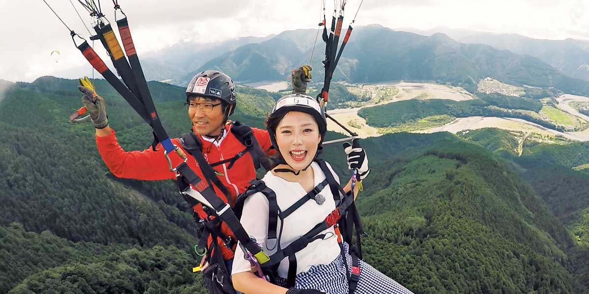 大きく蛇行し、「鵜山の七曲り」と呼ばれる大井川の姿など、大井川流域の雄大な景色を空から楽しんでみませんか。インストラクターとのタンデムフライトで、初心者も簡単に飛ぶことができます!
