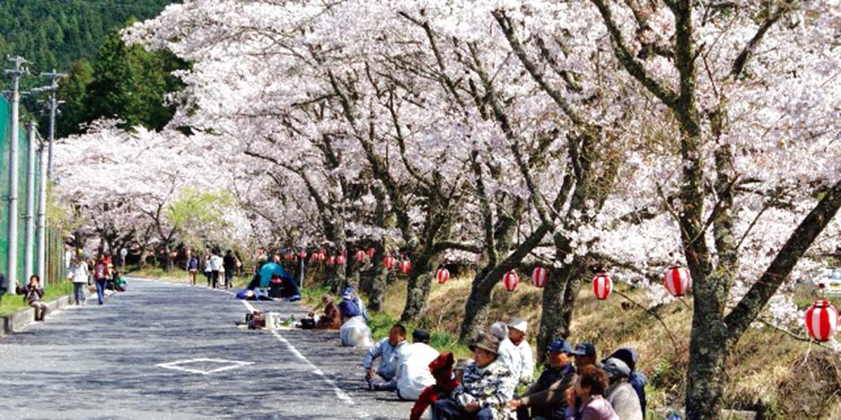 大井川鐡道の駿河徳山駅から約10分。川根高等学校周辺は隠れた桜の名所です。グラウンド沿いに並ぶ約300本のソメイヨシノが、訪れる人を魅了します。