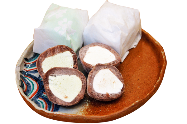 名物の「川根大福」は、たっぷりの餡と生クリームをモチモチの生地で包んだ人気商品です。早々に売り切れてしまうこともあるので、ご注意を!