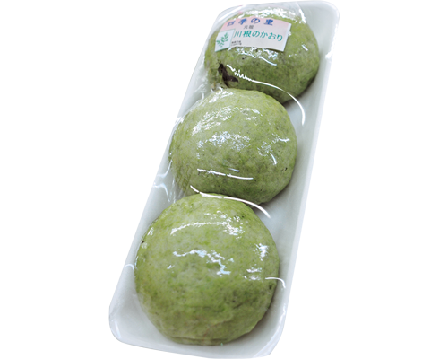 地元野菜や特産品が並ぶ販売所。よもぎたっぷりの「よもぎまんじゅう」と、煮込んだ油揚げがおいしい「ジャンボいなり寿司」や手打ちそばが人気です。