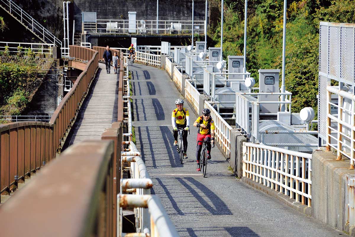 橋の上は道幅が狭いため、車や歩行者の通行に注意しましょう。